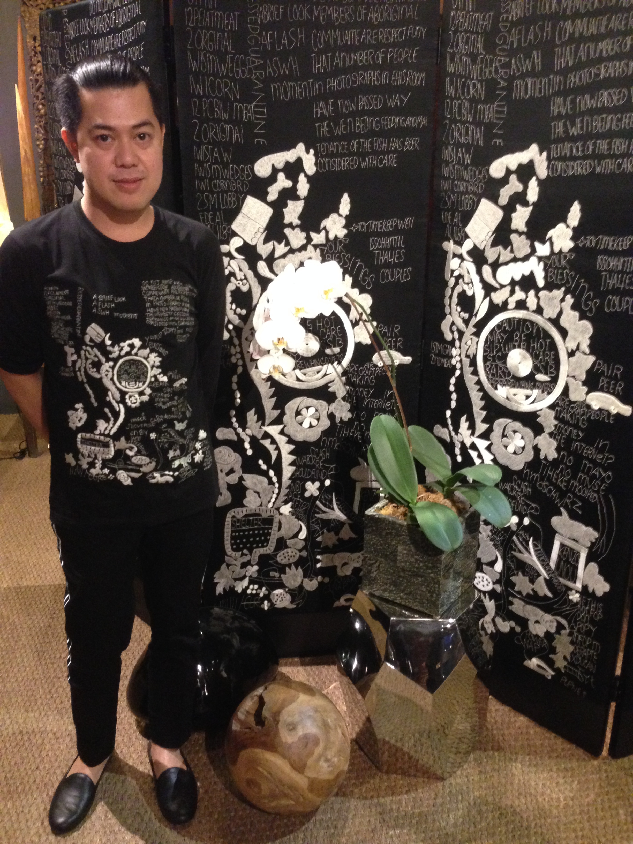 As I always say, I advocate everything Filipino.  The talent, artists, objects, material and the like. Let me first take you to the impressive visual feast I had when I attended W/17’s latest event, featuring three homegrown artists and their genius. First up, would be, my personal friend, Ian Giron. Ian was trained under the watchful eye of Josie Natori, where he worked for several years in Fashion.  After fashion, he took a rest and found inspiration before his next foray, which is now screen embroidery. These beauties are made by Filipino artisans, using 100% local products.
