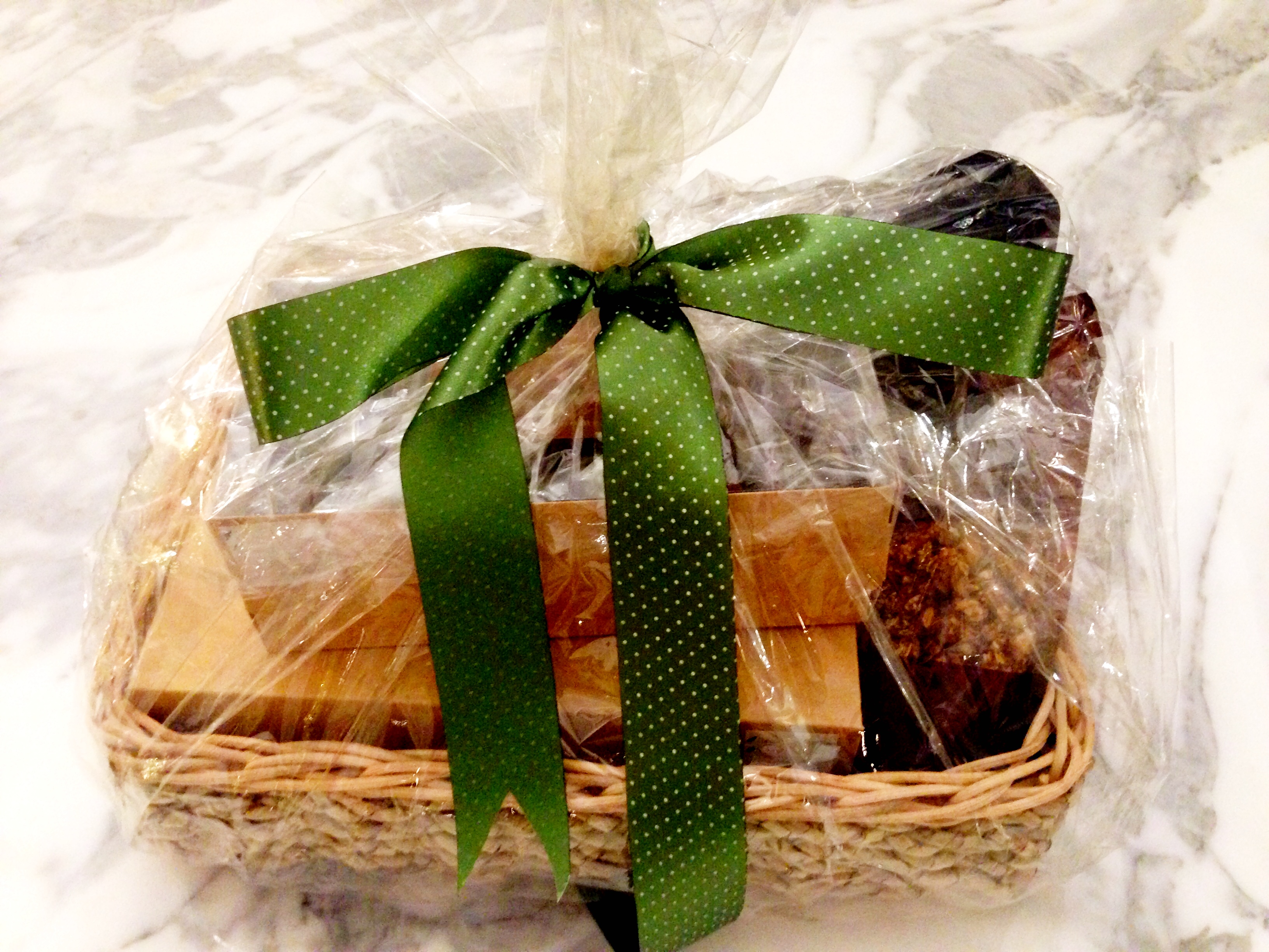 Amanda Tengco’s basket of home made goodies. her christmas baskets include almond muffins, granola, chocolate pecan cookies and artisanal coffee. you can also order them separately. basket is P1,580